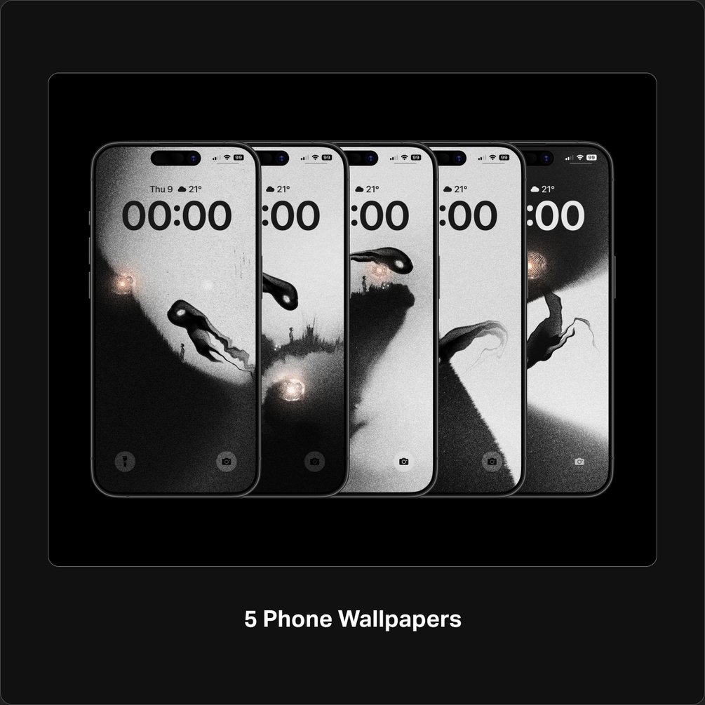 A collection of 5 grainy, monochromatic phone wallpapers designed by Faz as his birthday-giveaway ♥︎